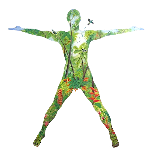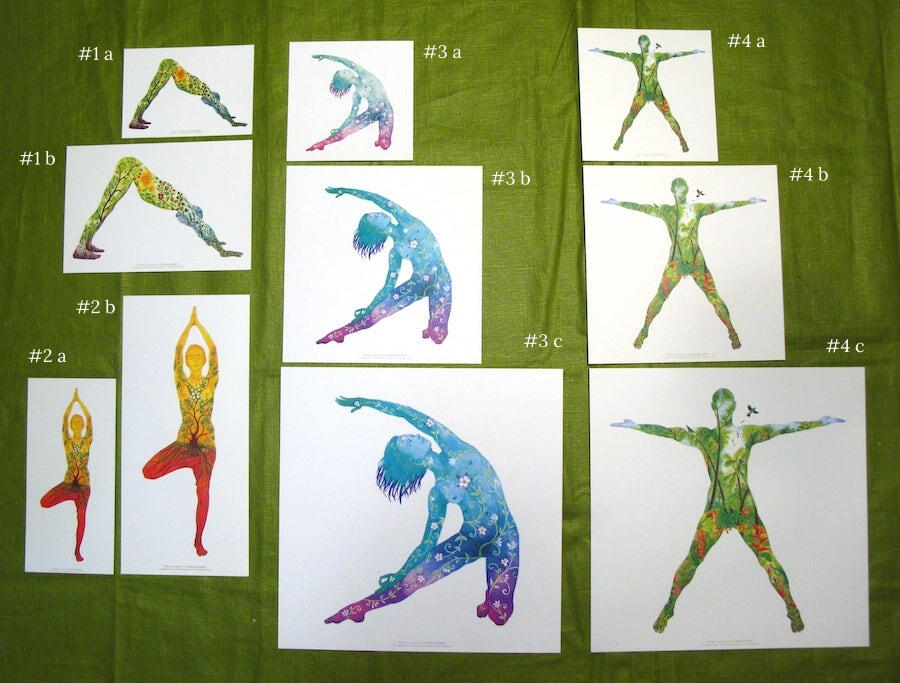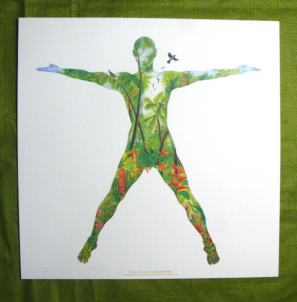 Yoga ou le corps paysage : illustrations de postures initialement réalisées pour la communication de l'association Semilla.Reproduction numérique d’originaux à l’aquarelle. Format carte postale, grande carte et affiche. Enveloppes et papiers de création 250 à 300 g.#1. L'HOMME JARDIN (Adhomukhasana)