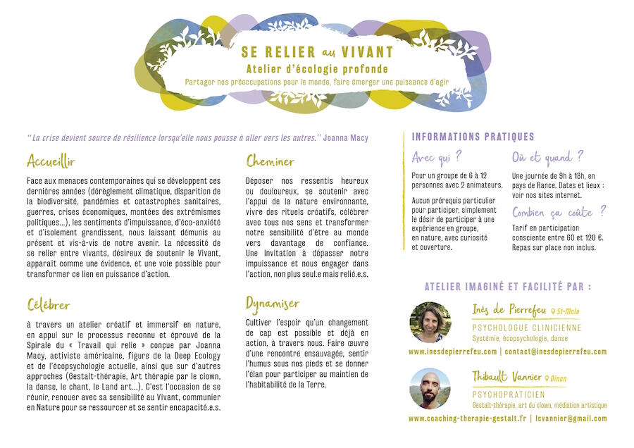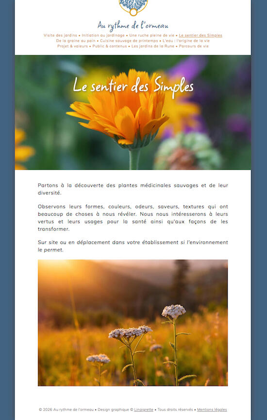 Elsa, surnommée Linaigrette.Née en 1978 au pays des volcans, nourrie par une enfance émerveillée en Auvergne.Nadaillat : premier village du premier mot, "feu !" Sur les sentiers de la montagne de la Serre, un peu plus tard, je m'entends répéter à foison les mots "lotier corniculé" à l'approche de cette petite fleur jaune d'or, comme une formule magique. Quêtes jubilatoires avec mon père : geyser jaillissant d'une source tombée dans l'oubli, scrupuleuse dissection de pelotes de réjection, éclat des pépites d'olivine dans la lave mauve, élevage de têtards dans la cuisine…Curieuse de tous les savoirs, dont le grec ancien à une époque plus emmurée, je cherche un temps mes racines dans une langue qui porte en elle les origines du monde, la lumière d'un âge non industrialisé qui me fascine dans la distance. Etiolée en ville, coupée du sensible, je glane ensuite un souffle d'air dans la musique de rue, dans les essences de plantes... espérant voir surgir un autre horizon.Départ pour la Bretagne en 2007, installation à Dinan en 2011. Par où (re)commencer ?Sans vivre pour autant en pleine nature, je cherche à refaire alliance avec elle, sur une voie poétique et sensorielle. Au gré des saisons, je dessine, découpe, contemple, caresse, cueille et cuisine les plantes sauvages, en fais de l'encre, les tresse… Du pesto d'orties à l'enduit terre-paille, toutes les matières premières naturelles à usage artistique et domestique m'attirent. Dans les métamorphoses que le geste accomplit, un rituel s'active, faisant resurgir un murmure ancestral.Changée par plusieurs deuils en chemin, je vis aujourd'hui notre voyage sur cette terre comme l'occasion de célébrer les beautés du monde, une chance de développer certains dons, et comme un instant où il nous est donné d'exercer notre bienveillance pour chaque être. La route s'éclaire de rencontres lumineuses, qui contribuent à soigner ma sauvagerie solitaire, en accueillant cette part joueuse et fascinée par le vivant dans laquelle je m'épanouis... et quand une personne porteuse d'un beau projet m'invite, que l'élan est réciproque, je fais de mon mieux pour y contribuer !
